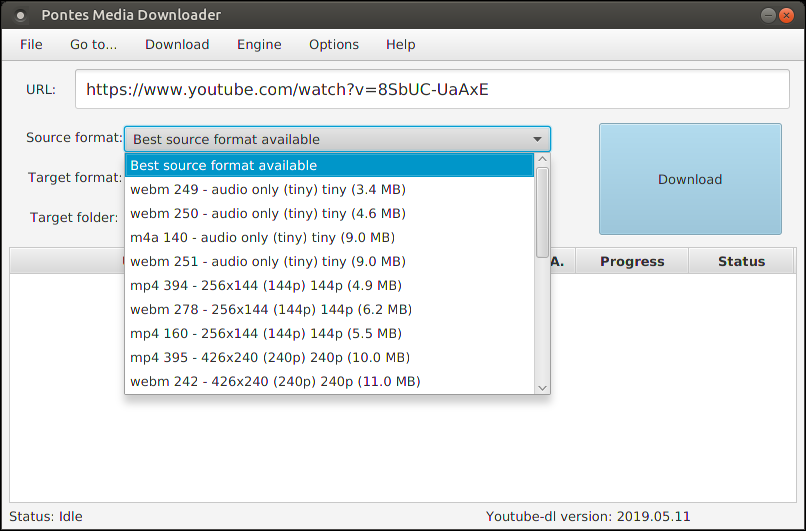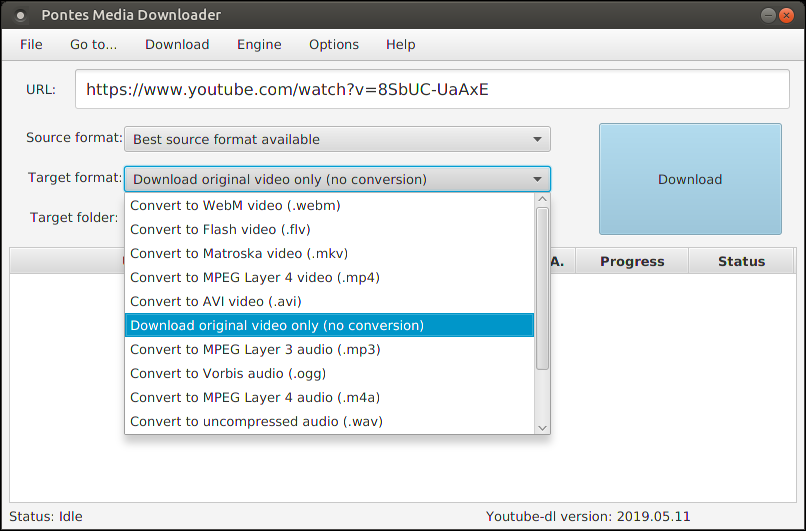 Pontes Media Downloader is a tool for those interested in downloading videos from YouTube, Trilulilu, 220.ro, and many others. Additional services are added each month by the developers of youtube-dl; there is an update option in the menu.